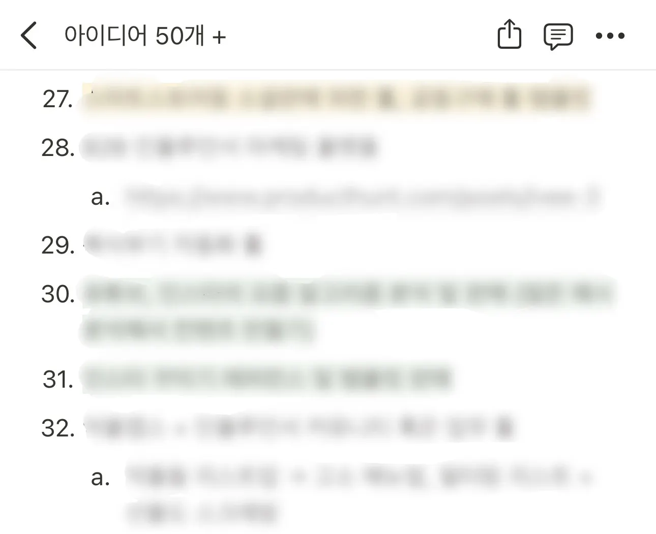 상단의 모자이크 되어 있는 저만의 아이디어 50개+ 리스트 원본을 공유 해 드려요.