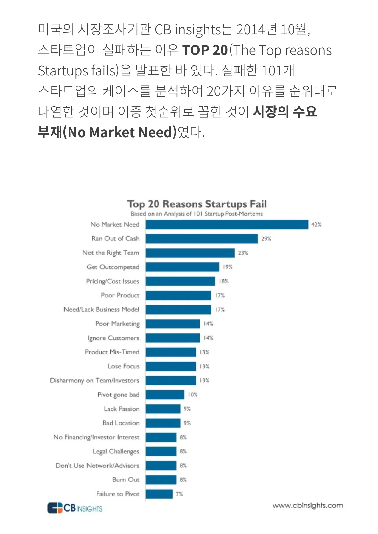 저 뿐만이 아닌 모두가 겪는 창업의 가장 큰 실패요인이었죠.