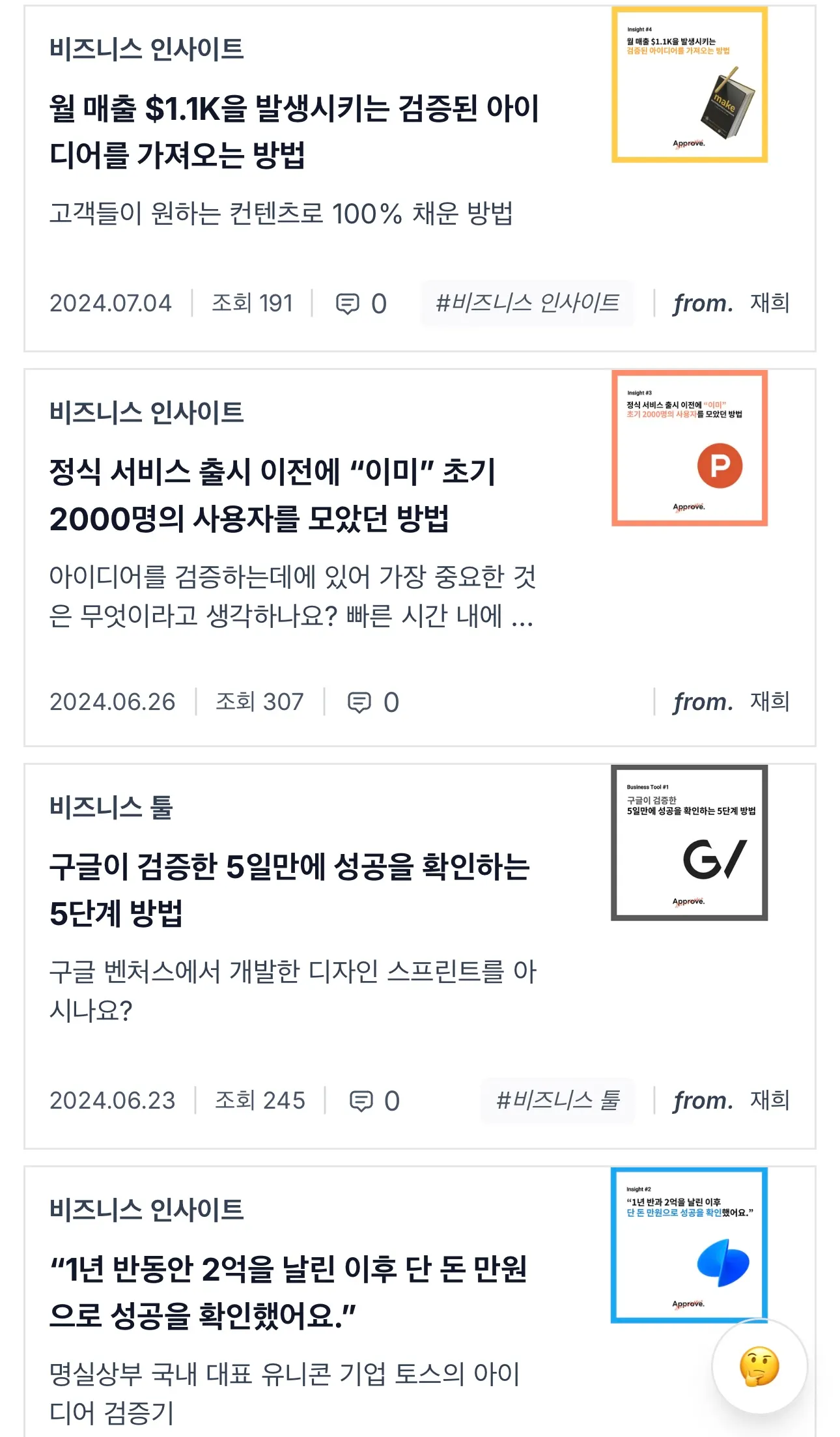 그래서 이제는 아이디어들의 반응을 먼저 확인해 보고자 어프루브를 시작하게 되었어요.